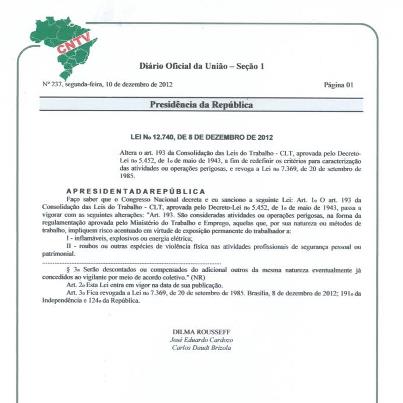 O deputado Chico Vigilante (PT/DF) e diretor da CNTV foi um dos primeiro a divulgar a boa notícia nas redes sociais, afirmando: “Companheiros, conseguimos mais uma vitória, conforme esperávamos, a nossa Presidenta Dilma Rousseff sancionou, na íntegra, o PL 1033/2003, que trata do adicional de risco para os vigilantes. Agora é Lei, a Lei 12.740, de 08 de dezembro de 2012!!! Está na primeira pagina do Diário Oficial da União. Falta agora a regulamentação e nossa conquista finalmente será efetivada”, afirmou Chico Vigilante.